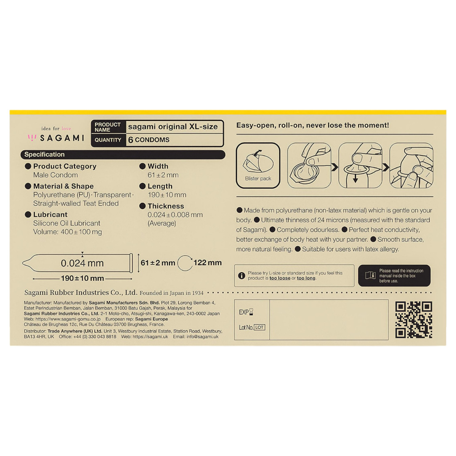 Why is the Sagami Original 0.02 XL-Size (6 pcs) good?